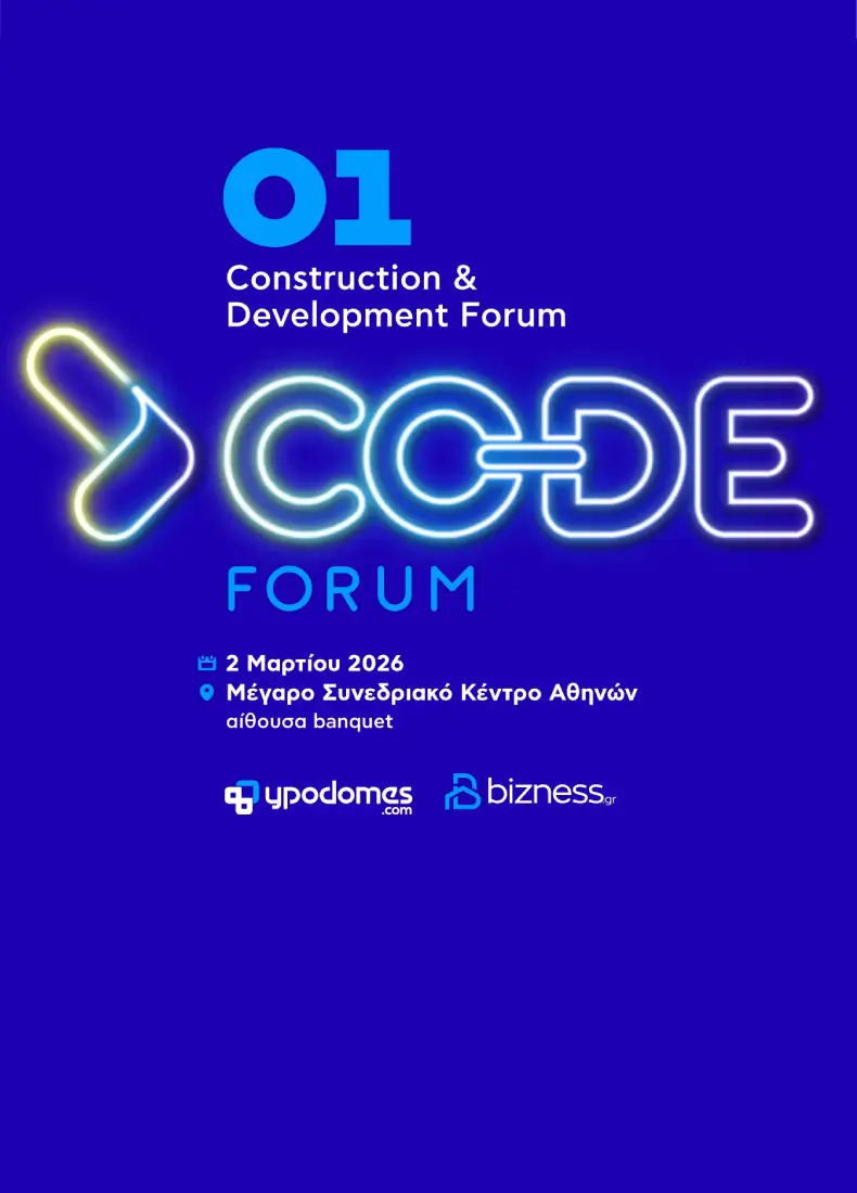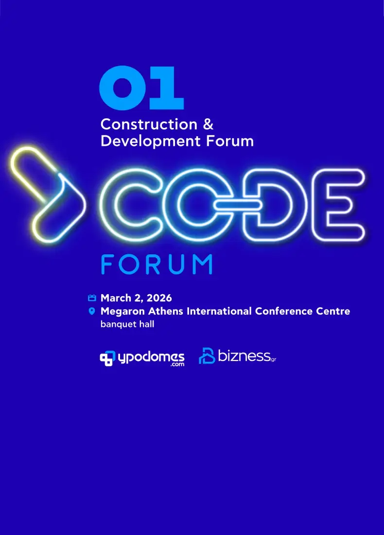 Το CODE Forum – Construction & Development Forum αποτελεί το hub στρατηγικού διαλόγου και επιχειρηματικής συνέργειας του κλάδου AEC+D (Architecture, Engineering, Construction and Development), εστιάζοντας στη διασύνδεση μεταξύ επενδυτών, τεχνικής ωριμότητας και κατασκευαστικής αποτελεσματικότητας. Διοργανωμένο από τα Ypodomes.com και Bizness.gr, το φόρουμ φιλοδοξεί να λειτουργήσει ως σημείο διαβουλεύσεων για την οικοδόμηση σχέσεων ανάμεσα σε επενδυτές, ιδιοκτήτες έργων, τεχνικές εταιρείες, παρόχους τεχνολογίας, θεσμικούς φορείς και συμβούλους, με κοινό στόχο την ωρίμανση υλοποιήσιμων έργων και την βελτιστοποίηση του δομημένου περιβάλλοντος.